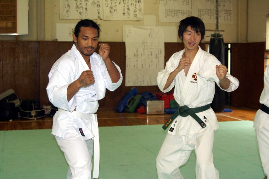 この奇特な人は金久幸秀さんで、十四歳から空手を習っていたが、一九九三年に出稼ぎに訪日、愛知県下で働いていたが、労働が終わってから会社の近くにある少林寺空手刈谷中部道院(進藤勝則院長)に通い、九九年に指導者となれる三段を取得、昨年四段に昇格した。