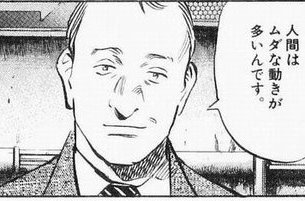 浦沢直樹の『プルート』から。あの鉄腕アトムの新作?です。このシーンがおもしろいなと思う。ロボットはプログラムの範囲内で動きます。だから「無駄な動き」をしないんだという。無駄がないから不完全?