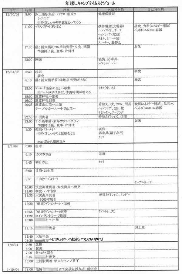 まず概要を説明しないとな。わからないと読んでてもイメージ沸かないし、今年参加者増えないもんな〜というわけで、左の図をクリックして読んでくり。時間は終了後に改訂されてますが、雰囲気は渡された時のままですます。