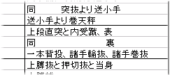 ![]() 法形の組み合わせは、科目表や武専カリキュラムを 見ればちゃんと狙って組み合わせてあります。 もっともっとありますので各自研究してください。 法形(連) 法形で遊ぼう、実際の演練法
