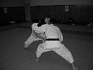 まずはやらないことには文章なんぞじゃサッパリわかりませんが、これも術の稽古になります。ちんたら柔法なんぞやっとると二人目に掴まれてしまいます。二人組の動きを考慮することになるので占位の認識も深まるかと思います。また複数人相手だと、じっと待っているとどんどん状況が不利になります。そこで少林寺拳法の言う守主攻従とはなんじゃらほい、ということを考える切欠にもなるかもしれません。 |