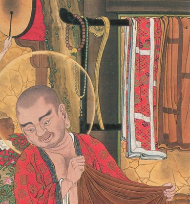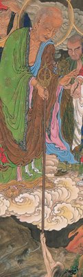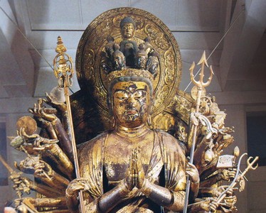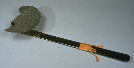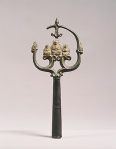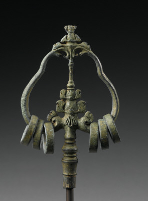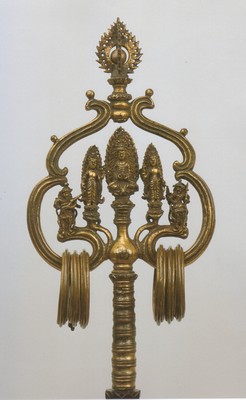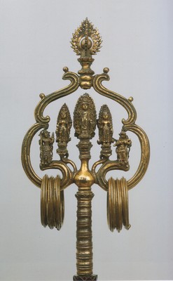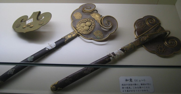 >如意は説法、講讃、法会などで講師が手にして威儀をただすのに用いる儀式用具。本品は銅板製鍛造で、金銀の鍍金をほどこした如意。(奈良国立博物館サイトより)