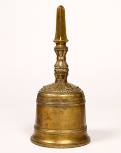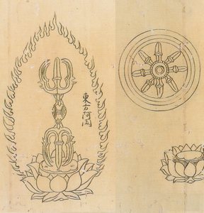 金剛杵は本来古代インドの武器で、密教では煩悩を打ち砕く意味で用いられる。杵形の把(つか)の両端に鈷を付け、鈷が一本のものを独鈷杵(とっこしょ)、三本を三鈷杵(さんこしょ)、五本を五鈷杵(ごこしょ)と呼ぶ。また、鈷のかわりに宝珠や塔を表した宝珠杵、塔杵もあり、これに独・三・五の三杵を加えて五種杵という。(『空海と高野山』 編集 京都国立博物館他) 密教法只は古くは奈良時代に雑密と共に一部が我国にも伝わったが、平安時代に入ると伝教大師や弘法大師をはじめとする入唐八家によって、現在でも密教寺院で見受けられるような密教法具が請来された。この密教法具とはインドの生活用具に祖形をもつとされるもので、例えば身を守るための武器や楽器類であった。そしてそれらを用いることにより人々の煩悩を打ち砕いたり、音により仏を歓喜賛嘆させ、人々の仏性を呼び起こすために用いられた。これらの法具類は、仏の三昧耶形(仏の本誓)を示す法具として修法壇の上に秩序よくおかれ曼荼羅世界を形成し、いずれの法具にも把部には蓮弁で飾った、蓮弁帯を有する。(『密教の花』 高野山霊宝館)