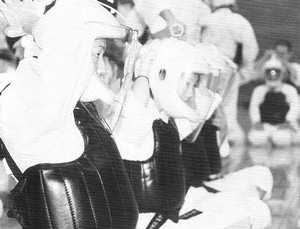 さて、ご存じのように、初期の少林寺拳法ではグローブ、胴を着用して運用法を稽古していました。道院での稽占はもちろん、大会でも防具着用の運用法を競技として実施、これにより学生大会なども盛り上がりました。激しい運用法の中で、自然と自分なりの戦術が磨かれる、あるいは運用法をした拳士同士が仲よくなり、現在に至るまで交流が続くというよい面があったというエピソーもよく聞きます。