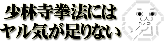 少林寺拳法の稽古に足りないものはヤル気だと思う。殺す気のほうヤル気。殺すというと物騒で大げさですけど、ここで言うのは、技が効くのか効かないのか、倒せるのか倒せないのかということであって、つまり有効性の有無て事であります。