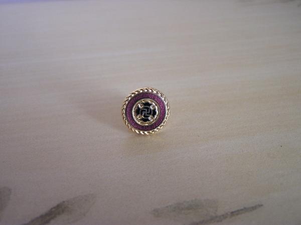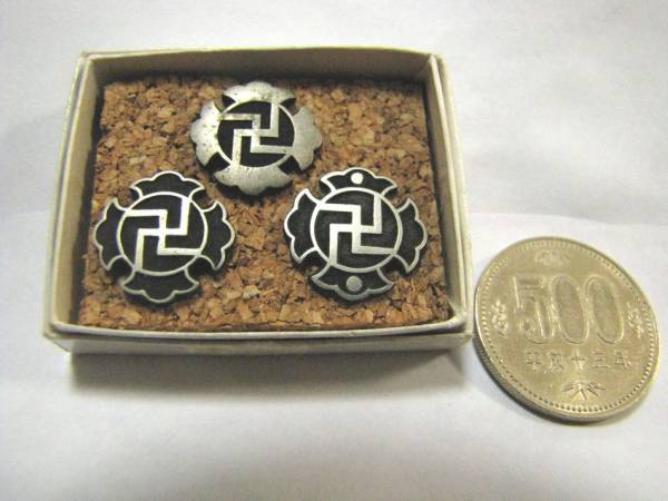 「少林寺拳法・中拳士・三段位のバッジ」 バッジの中央に金の卍がデザインされております。バッジの直径は、約1.4cmです。金属製だと思います。ケースの蓋はありません。平成元年頃のものです。