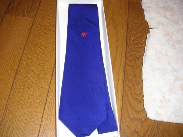 少林寺拳法ネクタイ。旧卍ロゴです。未使用品ですが箱がありませんので、適当な箱を付けて送付します。色は明るいブルーですが、二枚目の画像が影で暗く写っていますので、色は一枚目を参考にしてください。ノークレーム・ノーリターンでお願いします。落札後、三菱東京UFJ銀行振込みまたは郵便振り込みをしていただき、入金確認後、ヤマト運輸着払いで発送いたします。銀行振込みまたは郵便振込み手数料は落札者負担でお願いします。