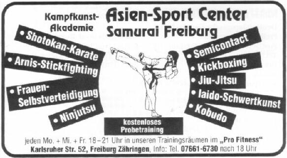 フライブルクFREIBURGという街(人口20万人ほど)で得た冊子の中にありました. ました.この街ではテコンドーの立て看板も見ましたし,聞くところによると合気道の道場が三つあるそうです.