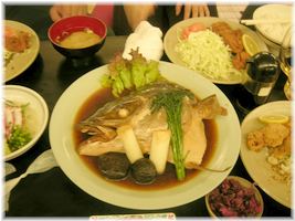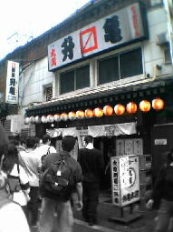 名物はゲソ天。土曜日は60%減の100円です!! 元気なオネーサンが間合いを見切った動きで、素早く机と荷物の間をサバき・通ります。スタスタ〜 酒造となっていますが定食屋でもあるので、お酒の弱い方(それは私〔615期生〕)、ご安心ください。昼は定食メニューが充実してます。かなり安くあがる店です。 |