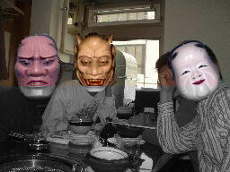左:食事を済ましてグータラしているだけのように見えて,そうじゃない.あくまでマターリ話している.「ご飯が一つ大盛りじゃないYO!」 とか,「店員さんコネーヨ!!」とか