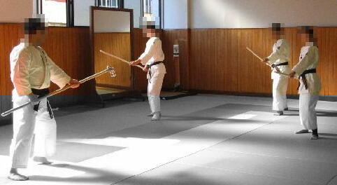 最初、錫杖を振って来られるととても怖いモノです。でも、慣れてしまえばどうと言う事もなくなります。そして慣れた時に徒手での「間合い」の感覚がどう変化するか?楽しみにしていましょう。