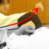 ワシは下げ振突きの後 拳を逆肩に上げ 裏拳を振下ろすような(バックハンドブロー)裏振突きをするように