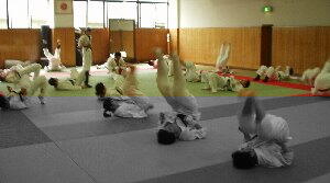 これはビスキュイさんの「茨城式飛受身習得法」を皆でやっているところですね。今写真を見るとなかなかの光景ですね(^_^;