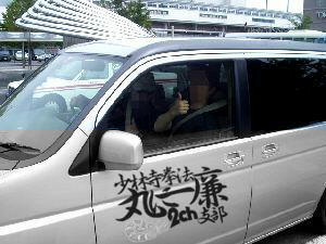 今回の私にとっての最大の収穫は,実は拳法云々ではなく熊狩さんと 親交を深められたことだ.彼は関西から今回の合宿に参坐してくれた, DEEPな2ちゃんねらーだ.私は,2002年末に一度,2ちゃんの関西オフで面識があったし,私が関西出身なので話しやすい.そのせいか私はどうやら合宿中, コテコテの関西弁に戻って話していた模様.あまり意識していなかったけど.私は彼と合流後はずっと彼の車で移動していたが,ほとんどアニソン (アニメ・ソング)を聞きながら,熱唱しながらの移動だった.「YouはSHOCK!!」などと二人で叫んだり,アニメ知識をいろいろと教授してもらった〜.楽しいぜ(
