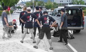 演武はある程度期間をとって「人様(公)に見せれるもの」を作り上げ・練っていくというのが一般的なプロセスだと思いますが,今回の演武はそれとは違うものです.感じとしては運用法に近いのかもしれません.というのも,このように練習時間が短いと,まさに「普段やってないことはできない」ということを実感するからです.「人様に見せる」ということも忘れ,時間が無さすぎでもうパニックです(丸廉の連中はみんな気楽に楽しんでいたが). 突然にやる,というところが味噌です.