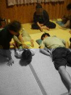 今回ようやく丸廉でも演武を行いました.初日の練習開始直後に自由に組を作ってもらい,合宿の最後の時間に演武披露をしてもらいました.これは事前に言ってなかったので,ほとんどの参坐者にとっては寝耳に水だった模様.でも発表までには,なんとかなんとか形にはもっていってましたよ. ほんまかいな?