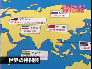 という番組のスタジオに置いてあった「世界の格闘技」図。中国のところに少林寺拳法があります。この番組が放送されたのは上のトリビアの前日です。(;・∀・)