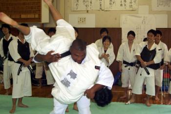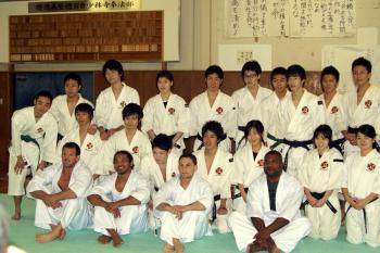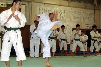迎えたのは少年と一般の約50人。イギリスの拳士は少年たちと基礎突きや鎮魂行をしたあと一般の練習に参加。「エイッ」「ヤー」と声を響かせ、日本人とペアになって組演武に汗を流した。最後に柿元道院長が一期一会の教えを説き「きょう会えたことをうれしく思う」と述べた。スティーブ・ウイリアムスさん(37)は「鹿児島でもイギリスと同じ練習をしていることを確認でき、いい経験になった。同じ拳士として熱い友情や思いやりを感じた」と話した。練習のあとは懇親会があり、イギリスと日本の歌や踊りをお互いに披露し合って親ぼくを深めた。(南日本新聞