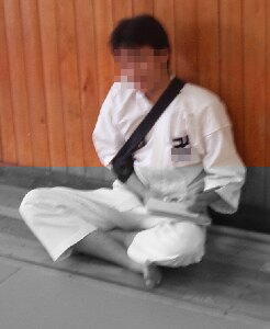 事の顛末を全て見ていたのはビスキュイ氏と私すりぃぱぁ氏は決して激しい受け身とか、持っている棒の上に落ちたとかではなく普通に受け身をしていました。でも、ちょっと肘の張りが足りないかな?下も柔らかめの畳だし、うーん。肩の筋肉が無いのかい?(138B)。
