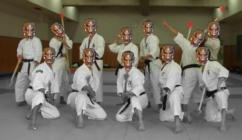 | Aみんなで棒をフリフリ〜♪ これだけの人数で棒を振り回していると中々に壮観ですな。